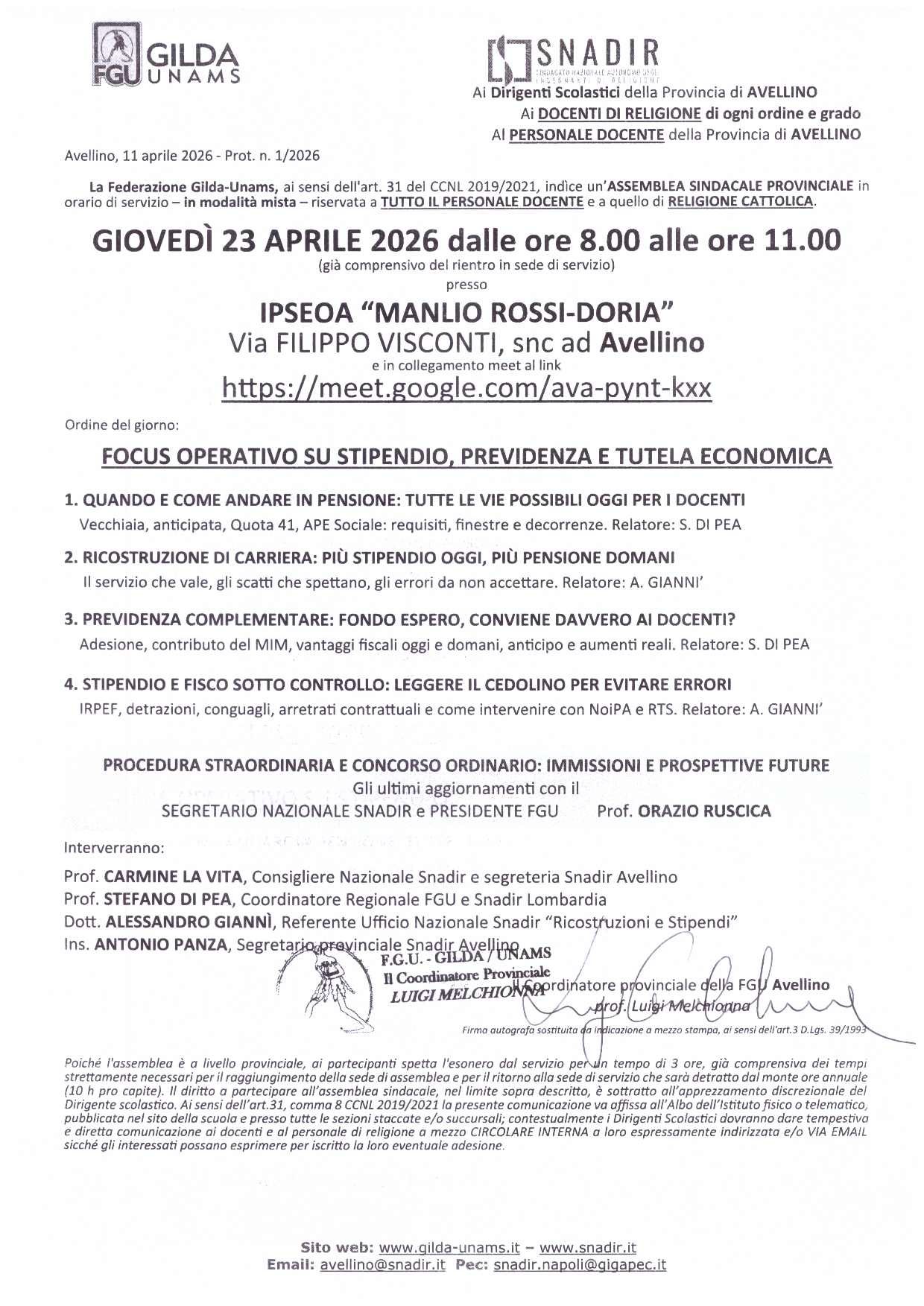 La GILDA UNAMS ha indetto un'assemblea sindacale in presenza e ONLINE - in data 23 aprile p.v.- dalle ore 08:00 alle ore 11:00 - per partecipare collegarsi al sito: https://meet.google.com/ava-pynt-kxx (riportato sulla locandina)