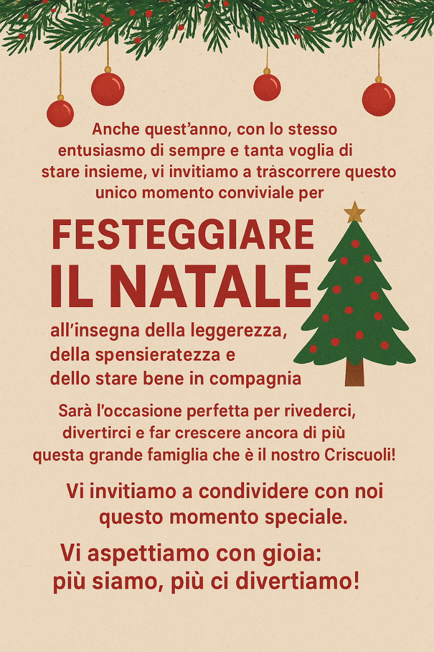 Un’occasione per ritrovarsi, chiacchierare, divertirsi e continuare a far crescere questa grande famiglia che è il nostro CRISCUOLI!