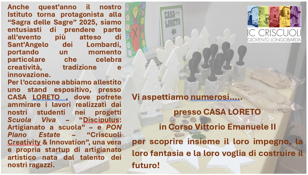 CLICCA QUI PER VEDERE I LAVORI DEGLI ALUNNI DELL'I.C. "CRISCUOLI"